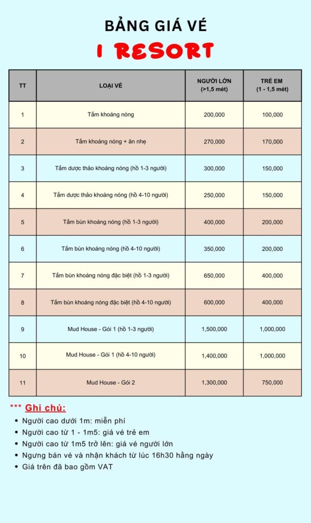 Xin cung cấp đến quý Khánh hàng thông tin mới nhất gói tắm bùn I Resort và chính sách ưu đãi cho từng gói dịch vụ tại 岛屿旅游有限公司.